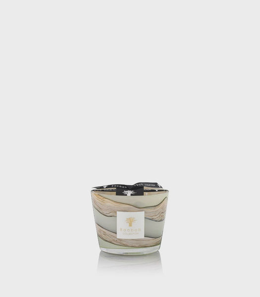 The Stones Marble scented candle is set in a hand-blown glass replicating grey marble with black strokes edged in beige. The scent features notes of Leather, Rose, and Plum. Sizes: ...