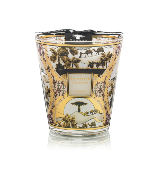 Caravane scented candle captures the timeless allure of ancient camel caravans journeying across the deserts of Africa and the Orient. Featuring a 24-carat gold screen-printed design, the candle depicts camels...