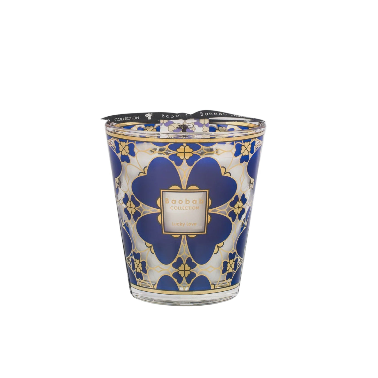 Inspired by a vintage piece of jewelry from the 1960s. the design of the Lucky Love candle features a precious screen print in 24-carat gold and midnight blue. With notes of Mimosa sprigs, Hawthorn and Musk, this candle releases a winter mimosa fragrance, reminding us at every moment of the joy of loving and being loved.