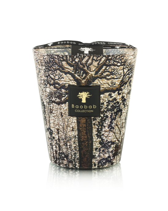 The Morondo scented candle is crafted in glass adorned with a sepia-toned baobab tree standing on the glass like a guardian sworn to protect nature from danger. Its amber fragrance of cinnamon, almond and cedar wood will fill your home with spicy notes, subtly inviting you to discover Africa.