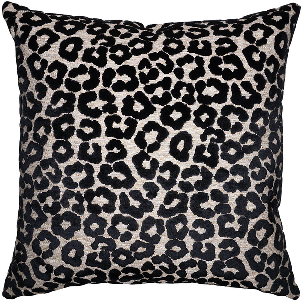 Decorative pillow with "Cattitude Onyx" animal print pattern, self-backed with matching fabric on both sides. Knife edge finish with invisible zipper closure for easy care. Size: 22" W x 22"...