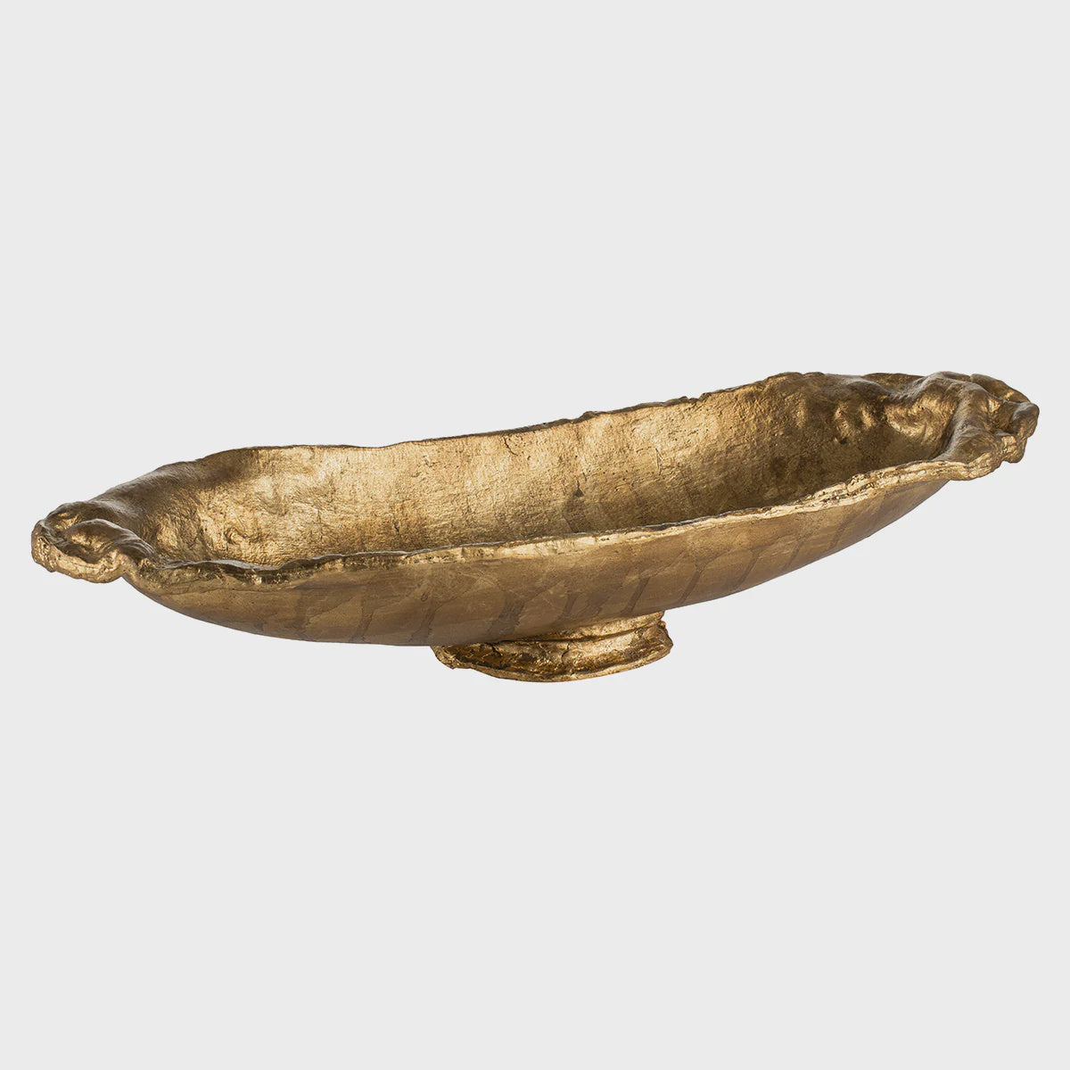 The Forshey Bowl is a stunning blend of traditional elegance and bold design. Finished in luxurious gold leaf with an antiqued umber glaze, the bowl evokes a timeless, waterfall-inspired silhouette that seamlessly fits into both classic and transitional interiors.