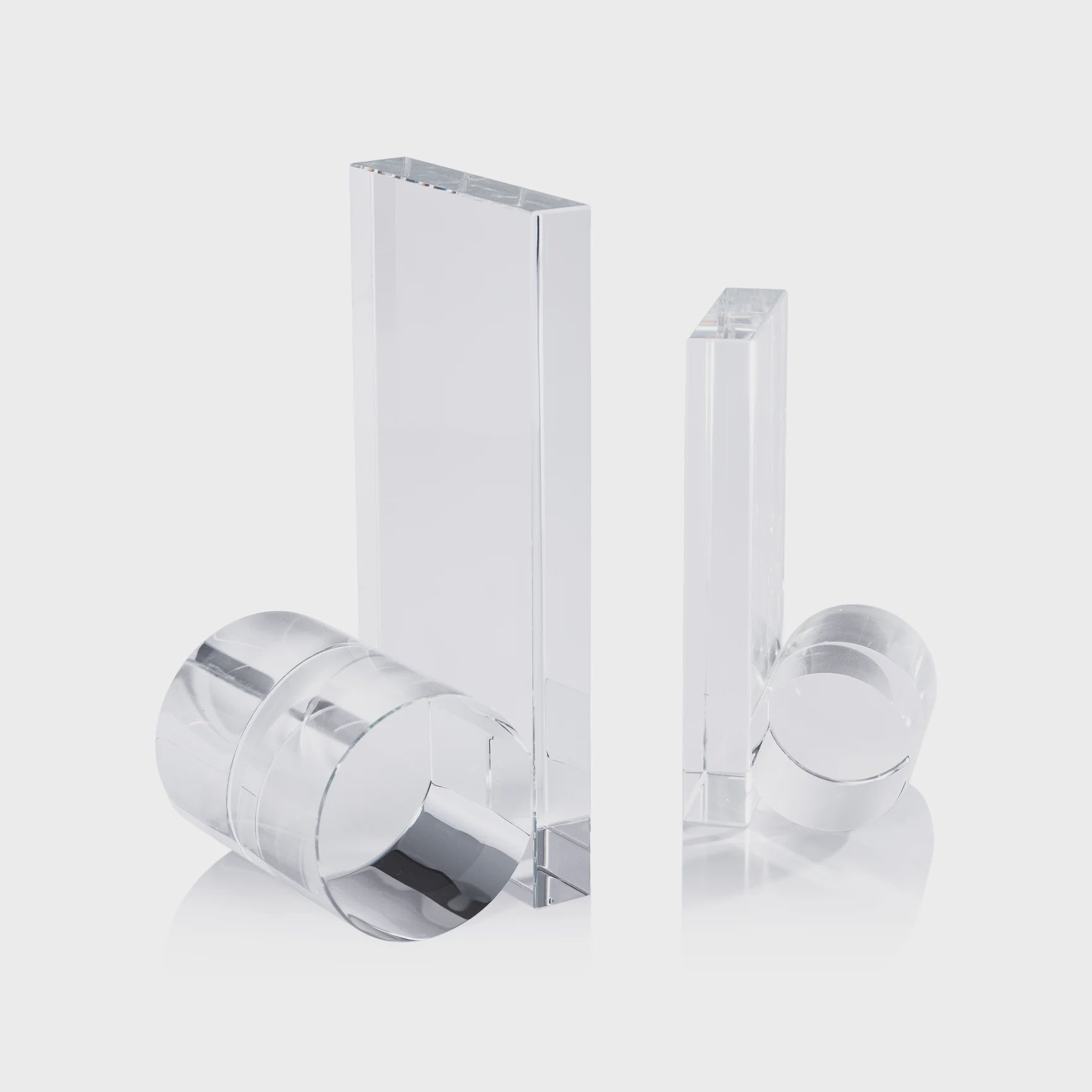 Stylish clear crystal glass bookends. Set of 2 (each a different size).