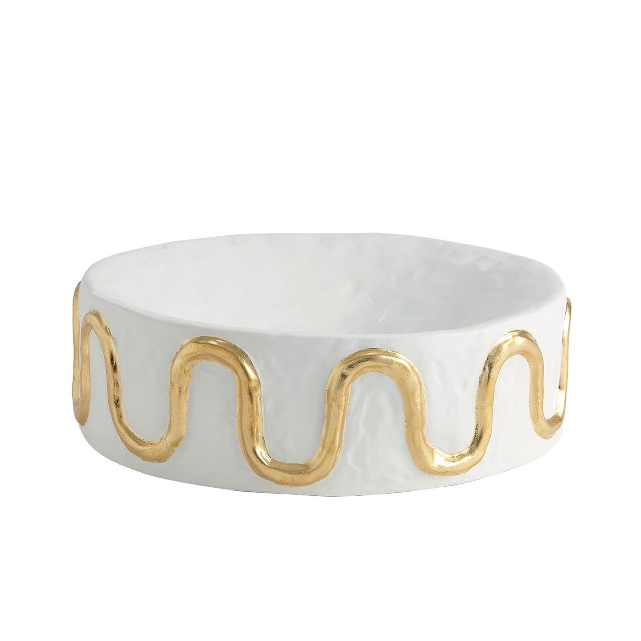 The Serpentine Bowl is made of Italian ceramic with a matte white finish and hand-applied gold leaf details.